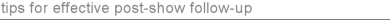 This is no time to relax. Effective and timely follow-up is critical to the success of your trade show. After the event: